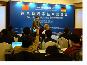 此次会议旨在进一步推动和加强中德在纯电动汽车技术领域的交流与合作。来自国家科技部、德国交通部政府主管部门领导和Volkswagon、BMW、Bosch、一汽集团、天津清源、上海大郡、华普汽车、上海电网、北方车辆研究所、中国电力科学研究院、同济大学、北京理工大学、等相关企业、科研单位及高等院校四十余家单位的专家和研究人员代表参加了会议。